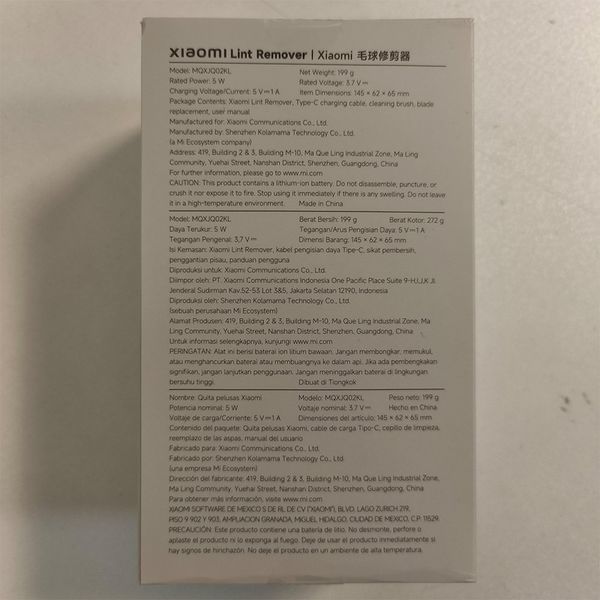 نسخه دیگر این محصول یعنی MQXJQ02KL نیز با همان ابعاد جمع‌وجور 145×62×65 میلی‌متر، وزن 213 گرم، توان 5 وات و طراحی ارگونومیک عرضه شده و با پورت USB-C، برس تمیزکاری و دفترچه راهنما همراه است. این مدل نیز قدرت بالایی در حذف پِلوس و پرزهای چسبیده به انواع لباس‌ها دارد و گزینه‌ای قابل اعتماد برای استفاده خانگی و مسافرتی است.